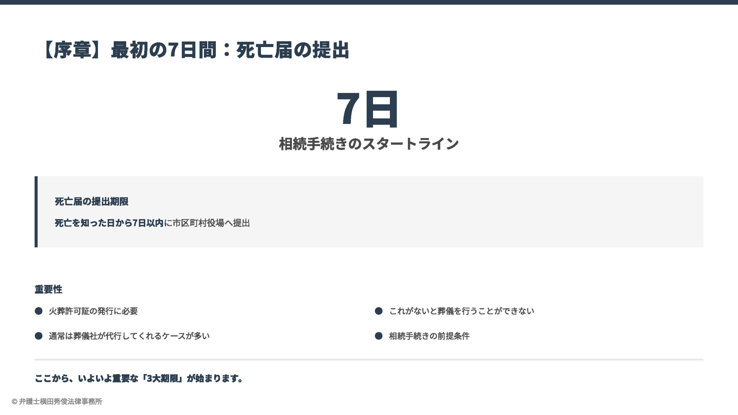 【序章】最初の7日間:死亡届の提出