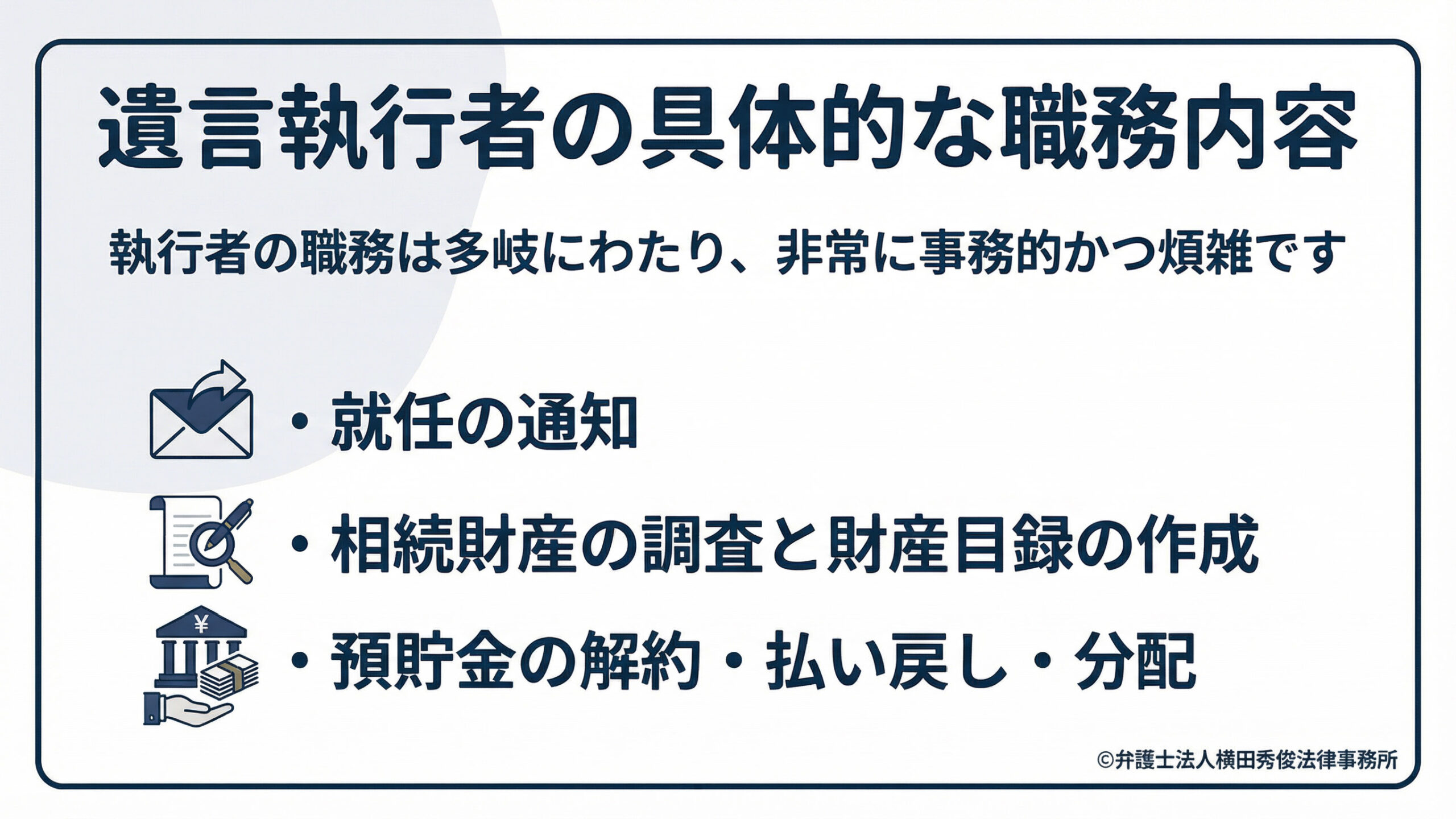 では、遺言執行者は具体的に何をするのでしょうか。