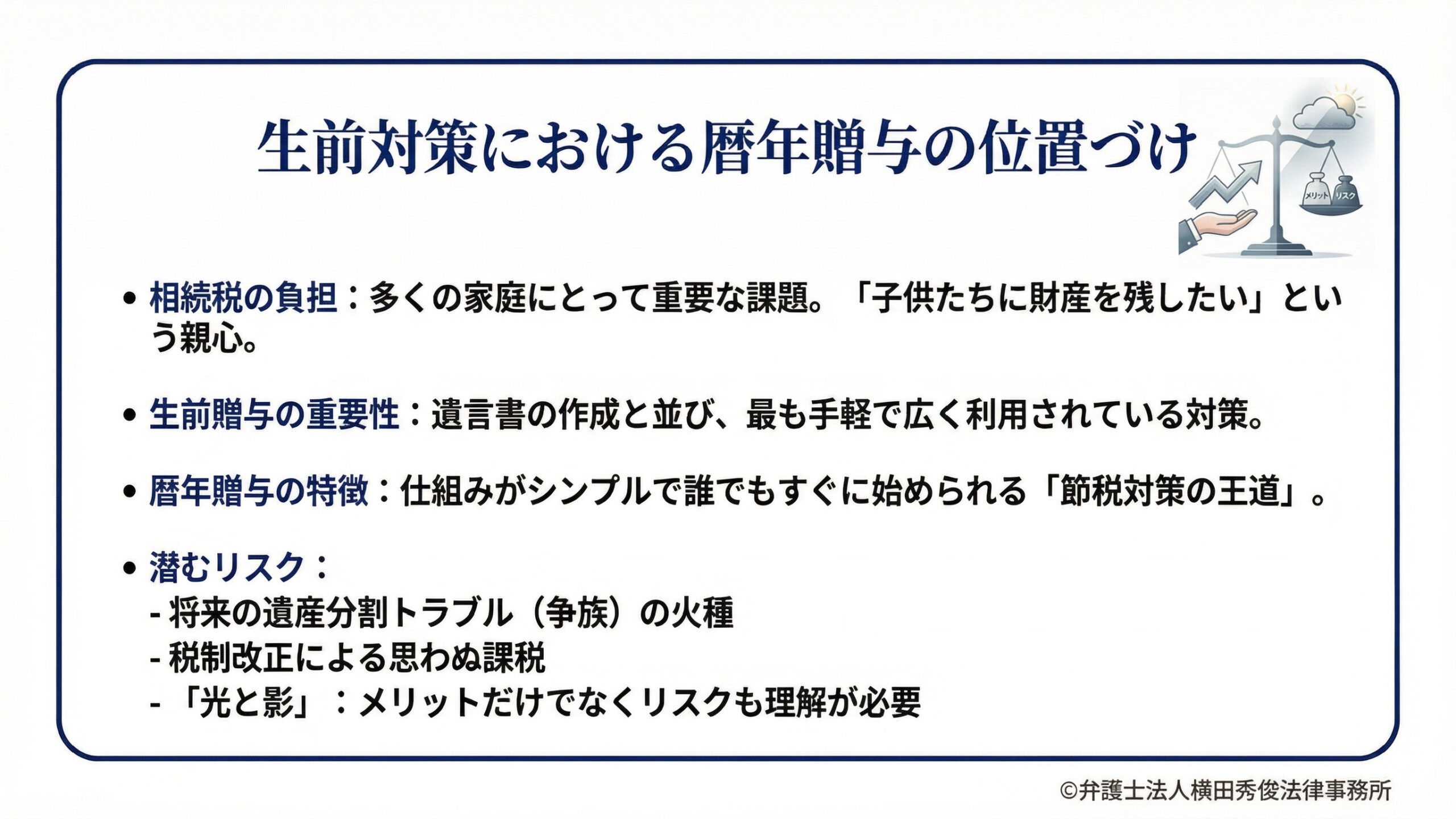 【相続コラム】毎年110万円の節税対策。「暦年贈与」のメリットと、弁護士が懸念する「争族」リスク