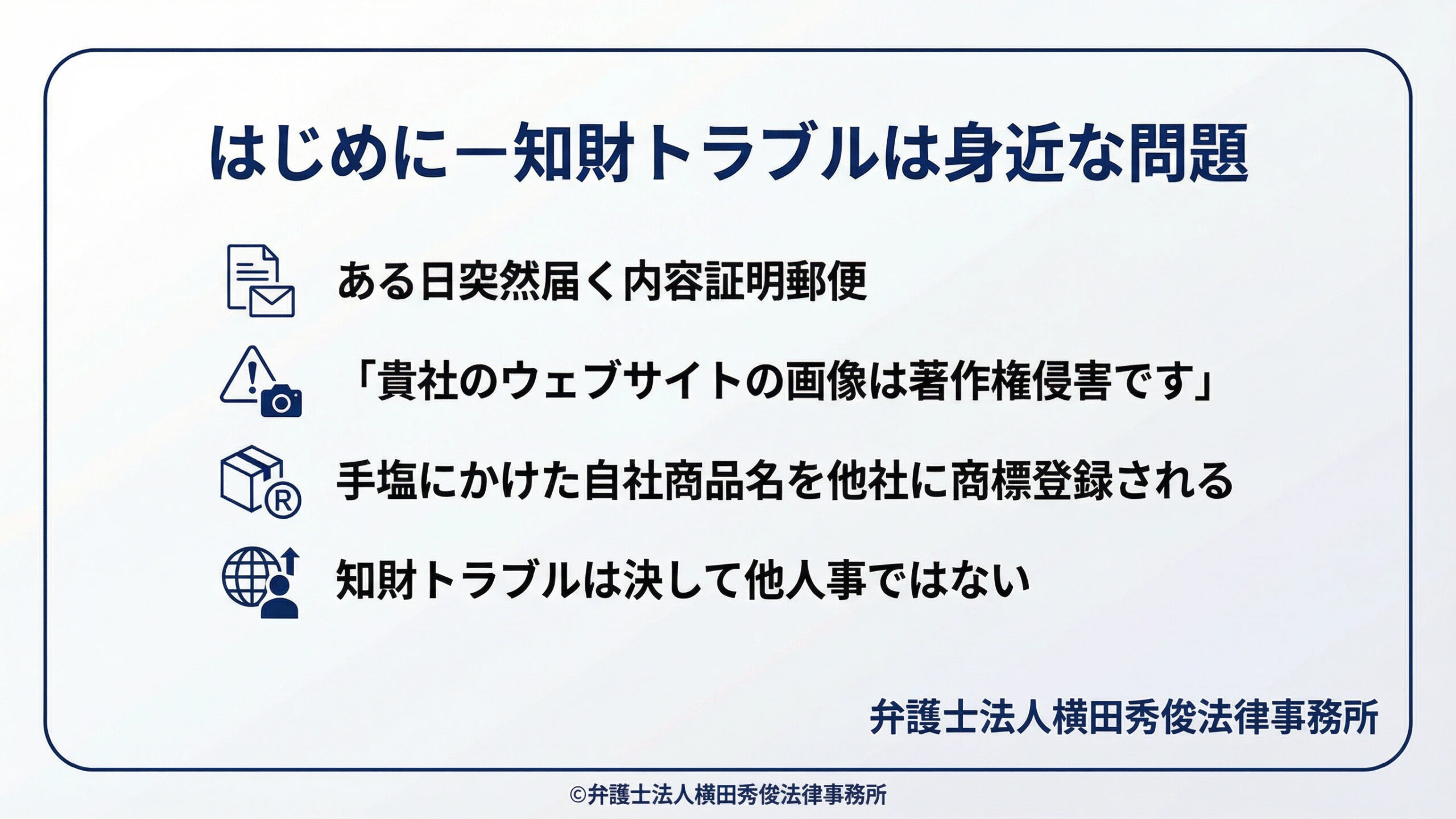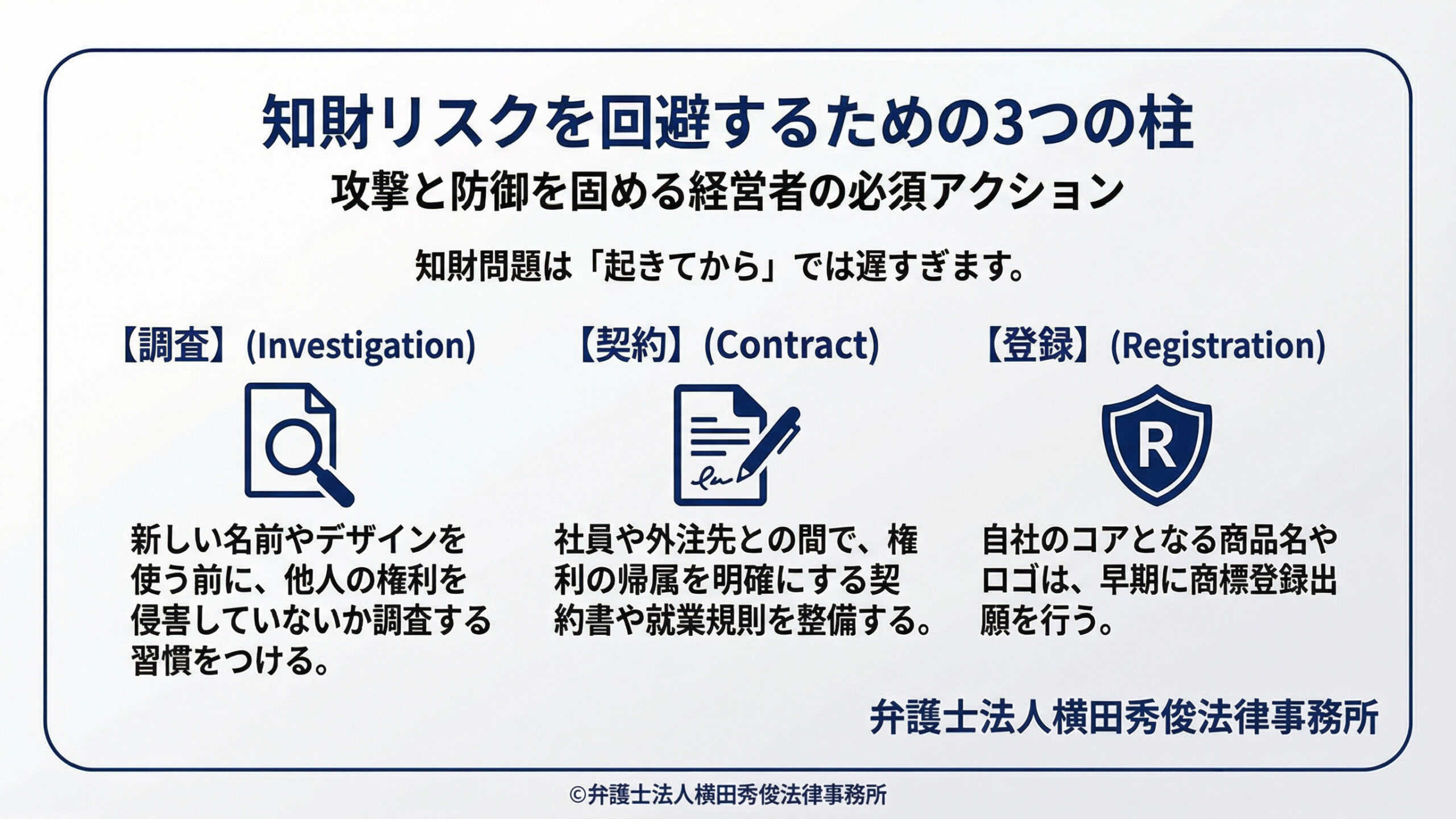 知的財産権の問題は、「問題が起きてから対処する」のでは遅すぎます。