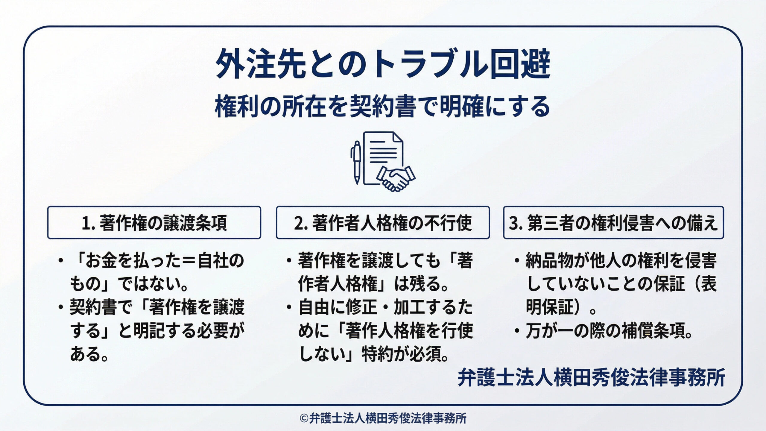 外注先とのトラブル回避。権利の所在を契約書で明確にする