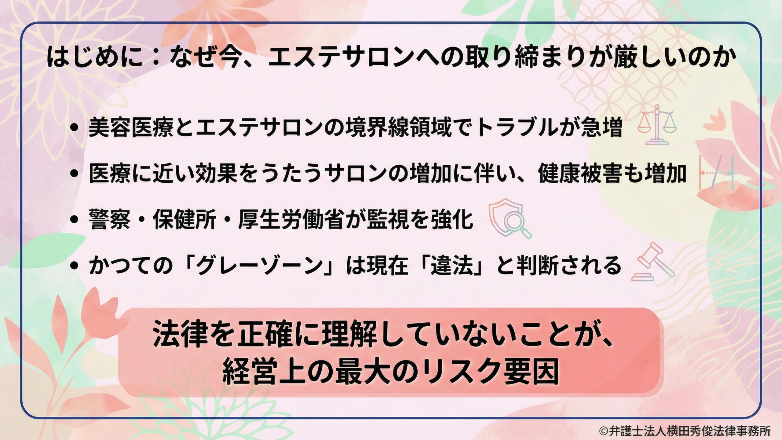 はじめに:なぜ今、エステサロンへの取り締まりが厳しいのか