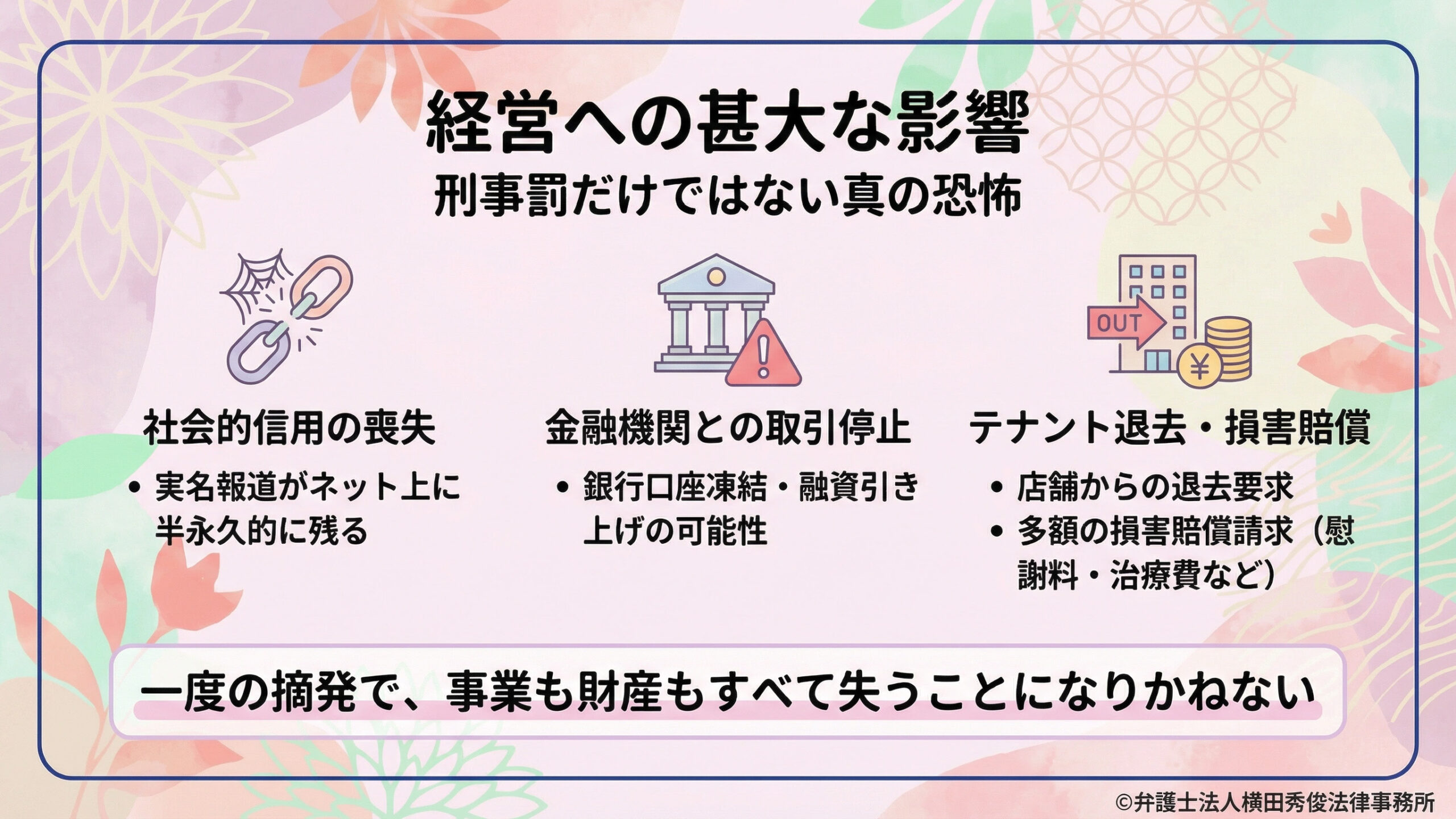 つまり、一度の摘発で、事業も財産もすべて失うことになりかねないのです。