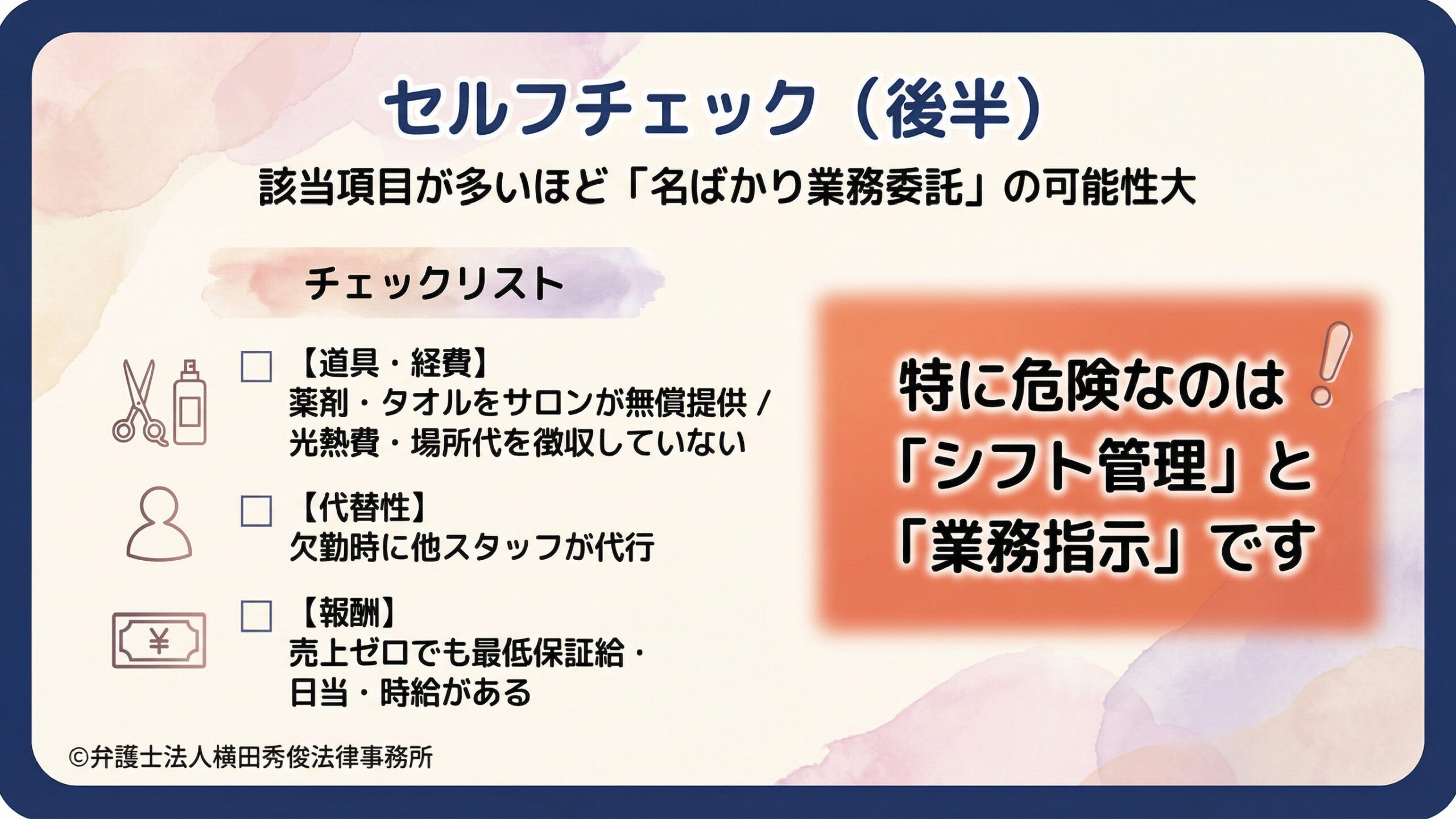 【セルフチェック】あなたのサロンは「偽装請負」になっていないか