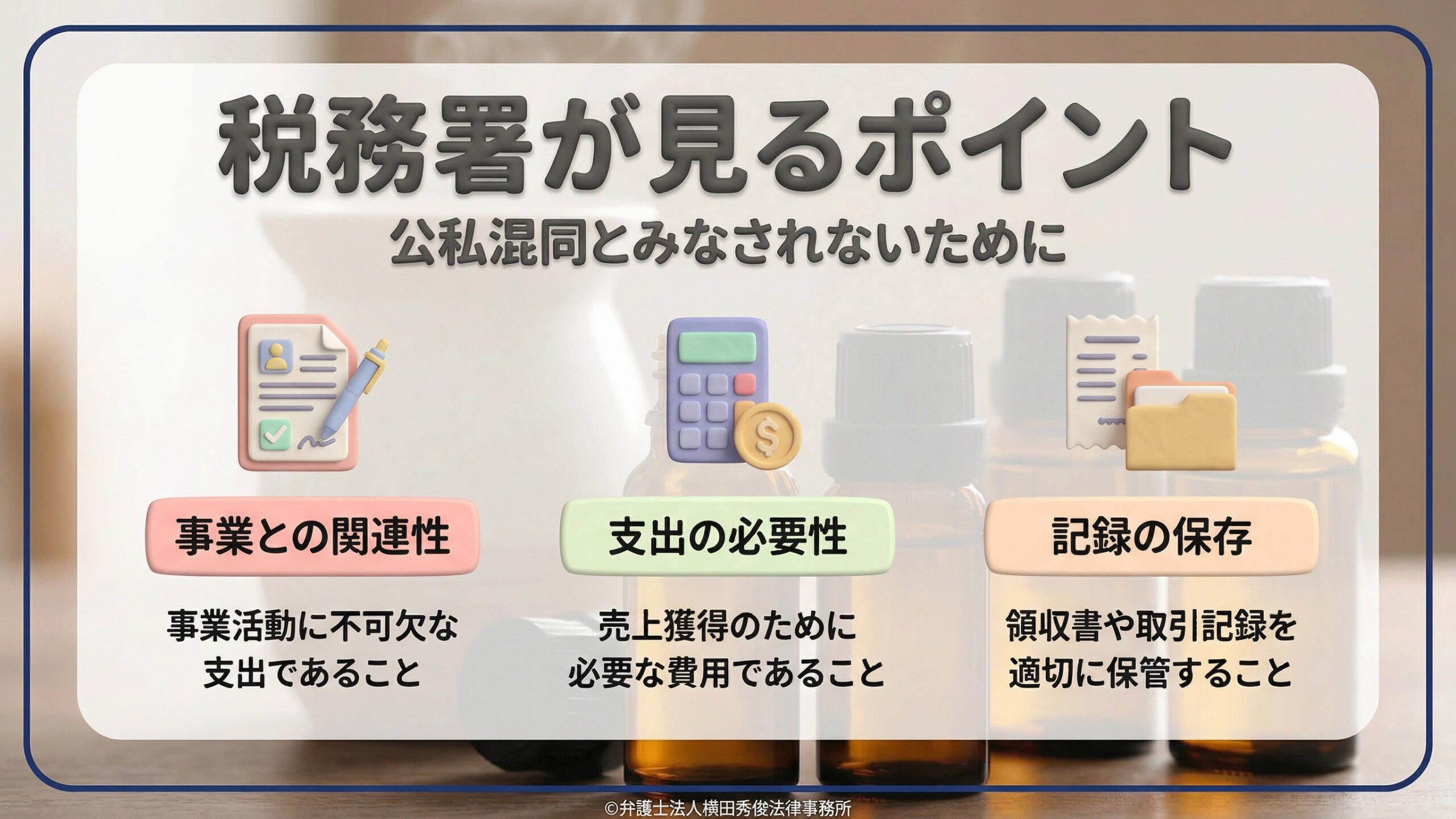 この両輪が揃うことで、初めて「脱税」の疑いを寄せ付けない、盤石なサロン経営が実現します。