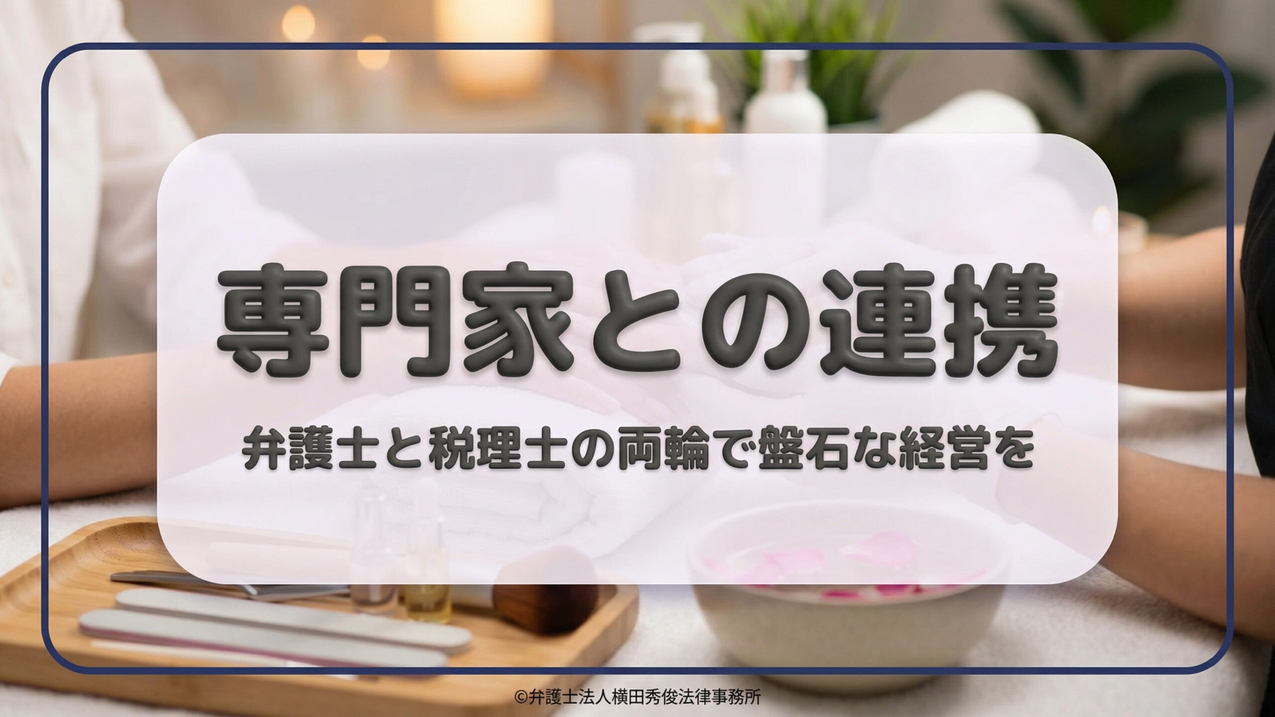弁護士法人横田秀俊法律事務所は、サロン経営者の皆様の最も身近なパートナーとして、共に歩んでまいります。