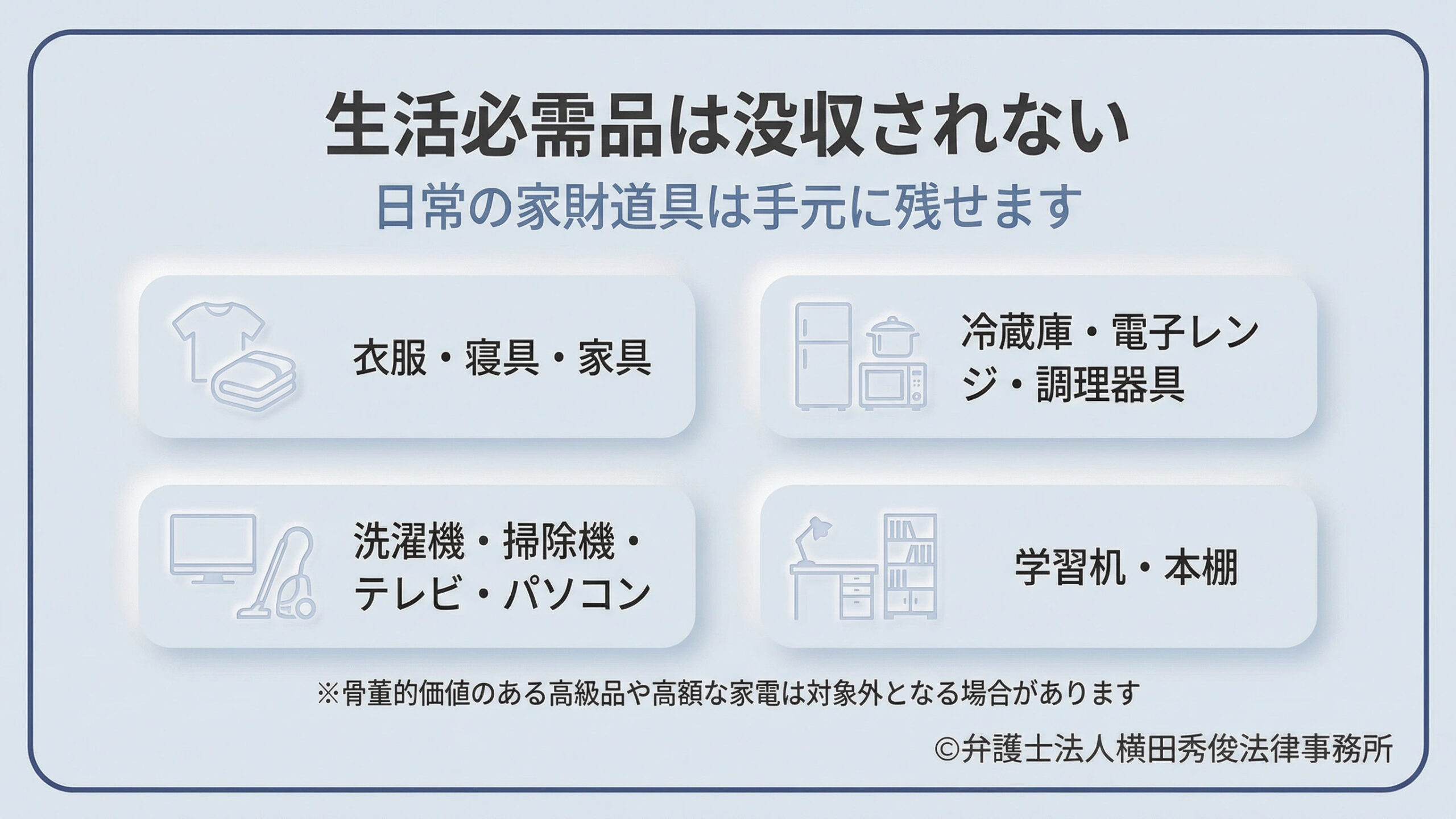 これらは、裁判所の特別な判断を仰ぐまでもなく、当然に手元に残せる財産です。