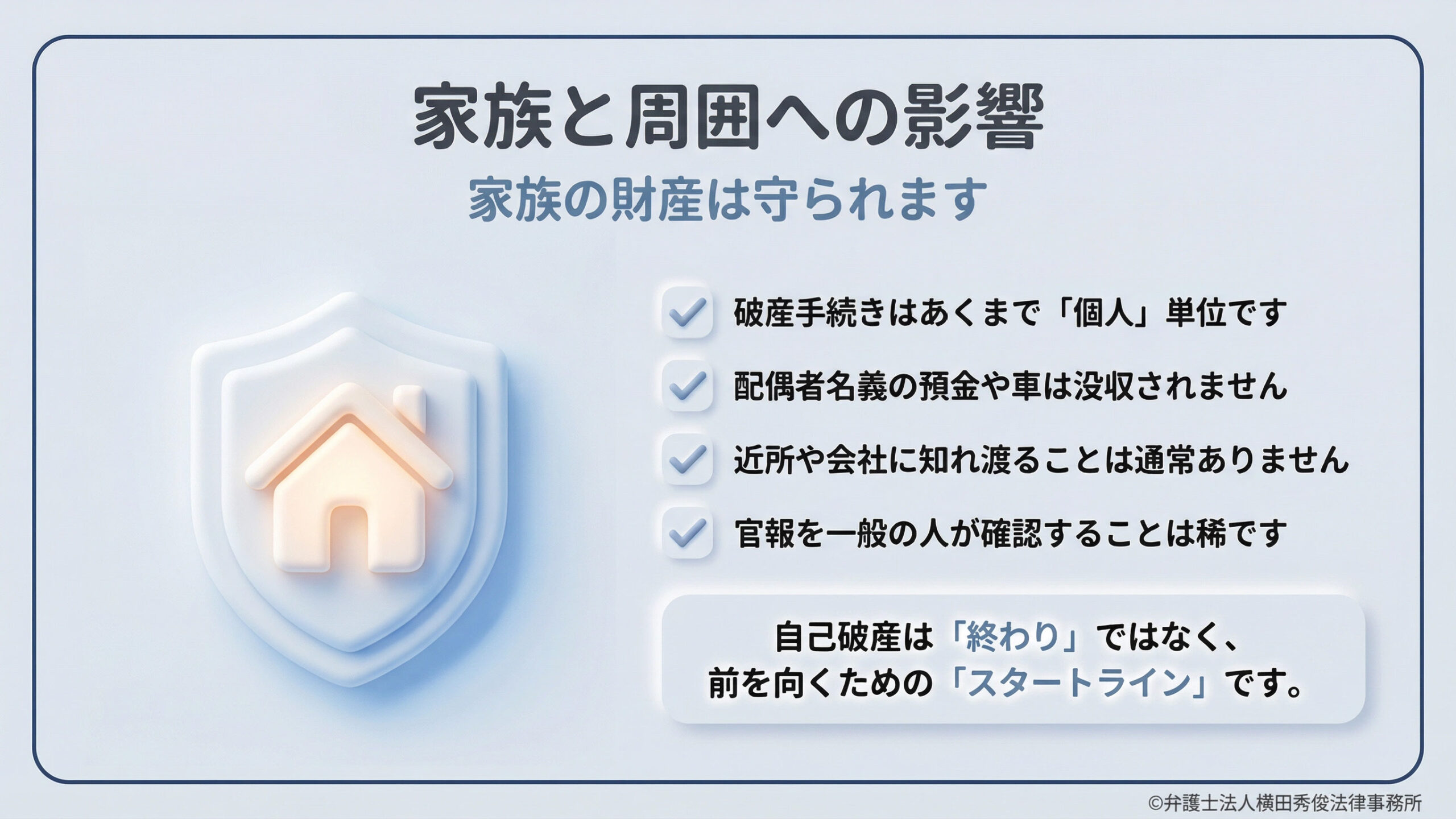 自己破産をしても、家族の財産が当然に没収されることはありません。