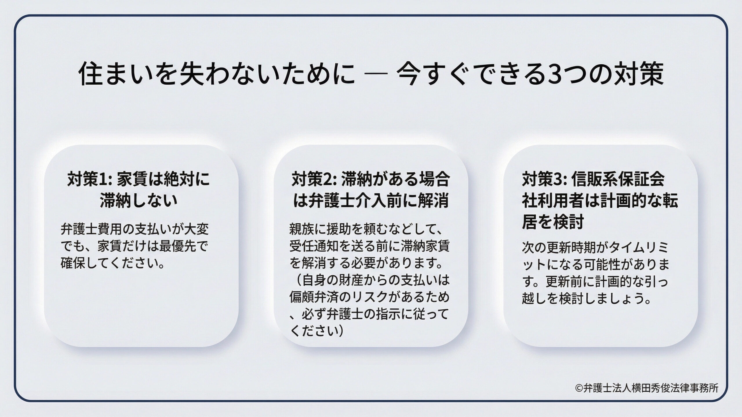 では、住まいを失わないためにはどうすればよいのでしょうか。