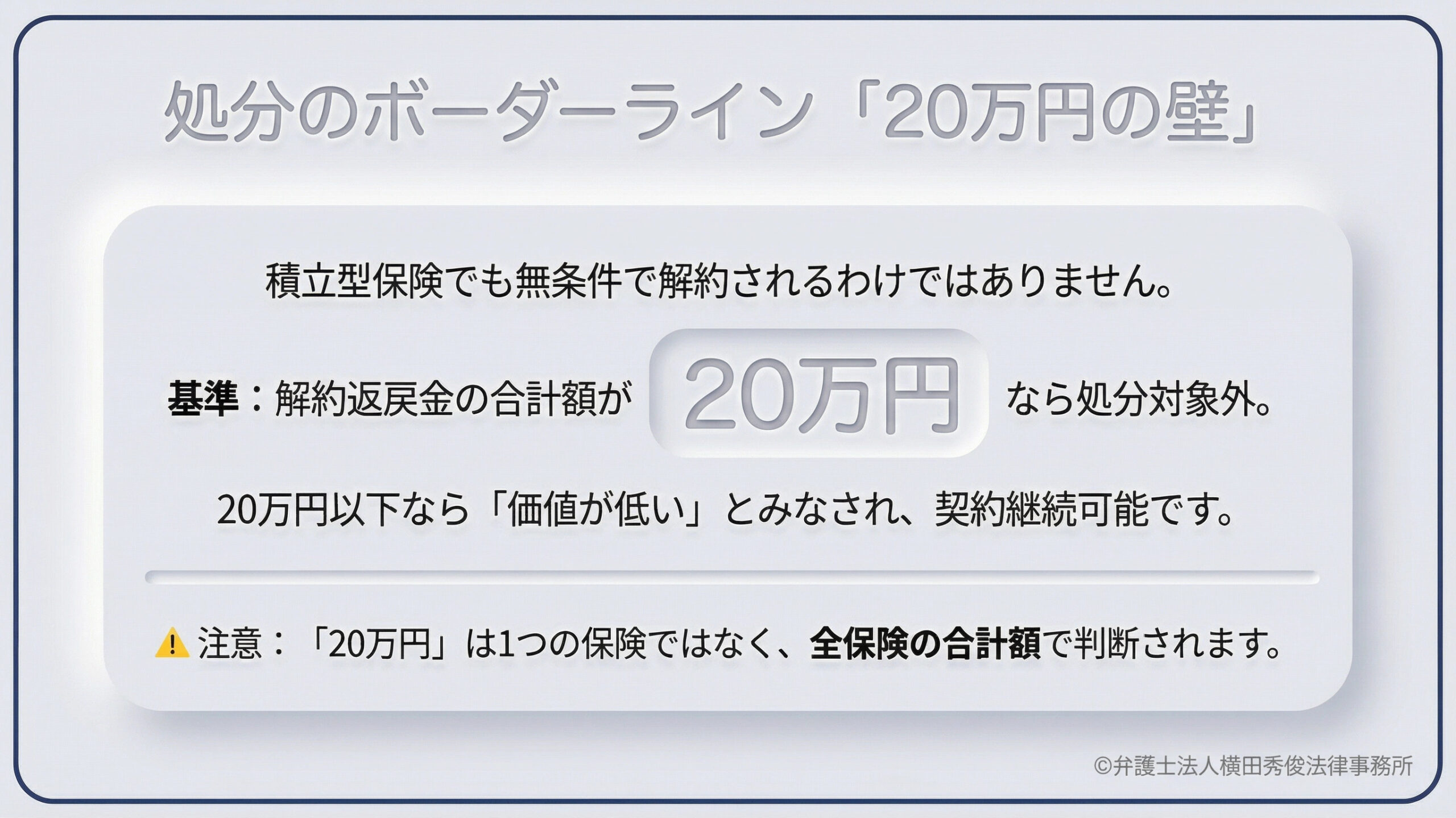 処分のボーダーライン:「解約返戻金の合計額が20万円を超えるか」がカギ