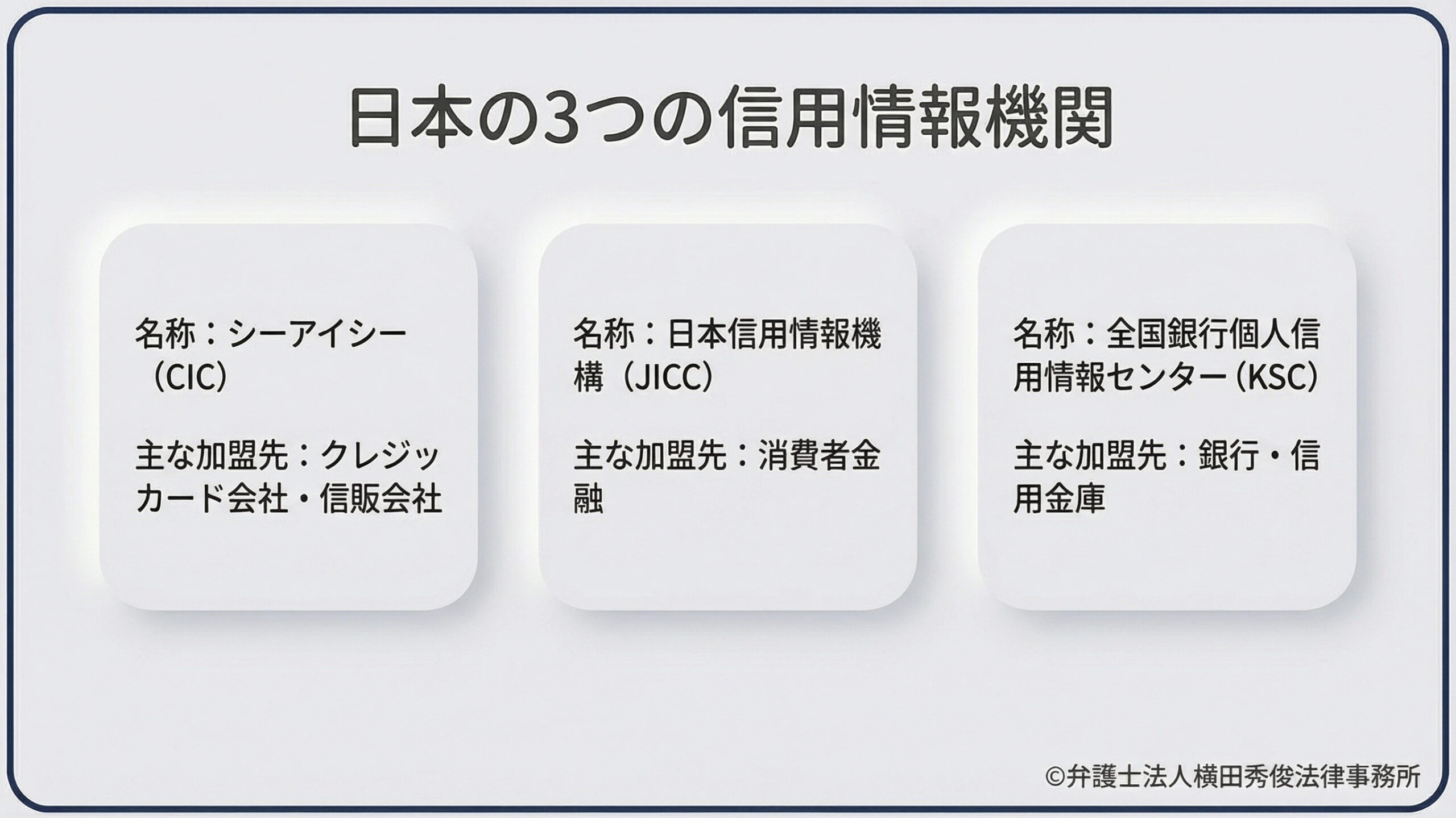 日本には主に3つの信用情報機関があります。