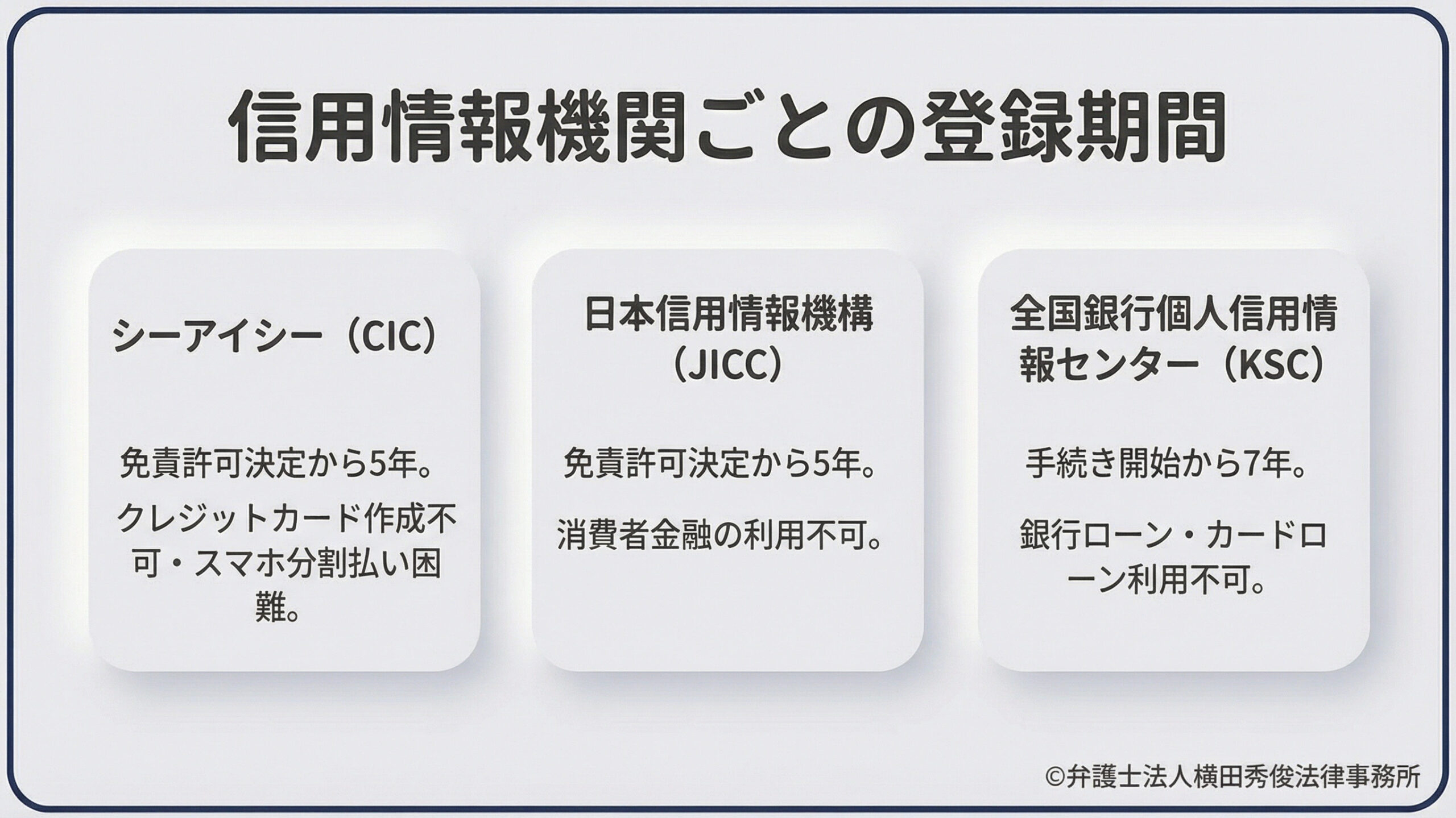 信用情報機関ごとの登録期間(CIC・JICC・KSC)